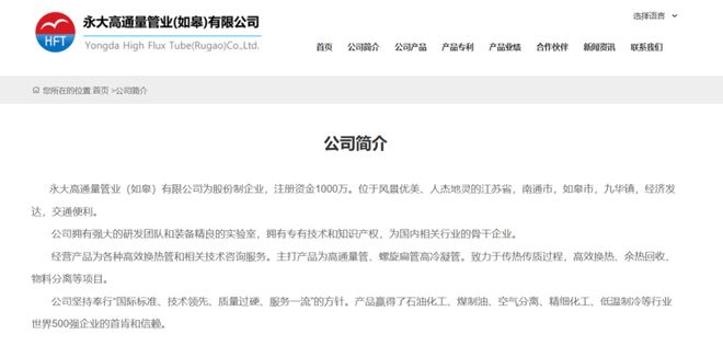 此外,永大高通量坚持奉行“国际标准、技术领先、质量过硬、服务一流”的方针。产品赢得了石油化工、煤制油、空气分离、精细化工、低温制冷等行业世界500强企业的首肯和信赖。”且永大高通量在其官网简介下方附有相关人员及工作照片。